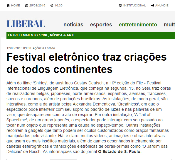 Em outra instalação, ‘A Tail of Spacetime’, de um grupo japonês, o espectador pode interagir com seu passado ao tocar num objeto que representa uma cauda no espaço-tempo. Outras instalações recorrem a gadgets que tanto podem ser óculos customizados como braços fantasmas manipulados pelo visitante.
