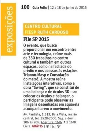 File SP 2015 O evento, que busca proporcionar um encontro entre arte e tecnologia, reúne mais de 330 trabalhos no centro cultural e também em outros espaços, como na fachada do prédio e nos acessos às estações Trianon-Masp e Consolação do metro.