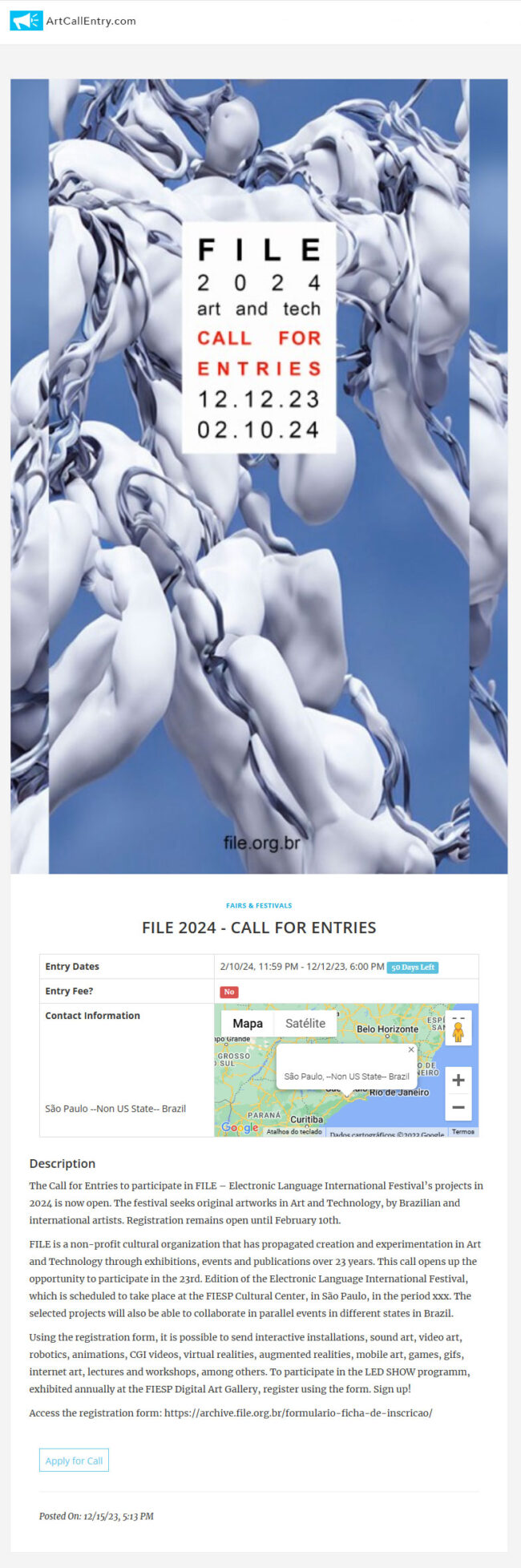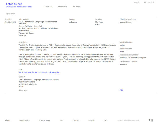 FILE 2024 – Inscrições Abertas – ArtCallEntry