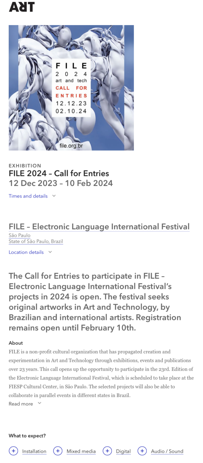 FILE 2024 – Inscrições Abertas – Art Opportunities Monthly