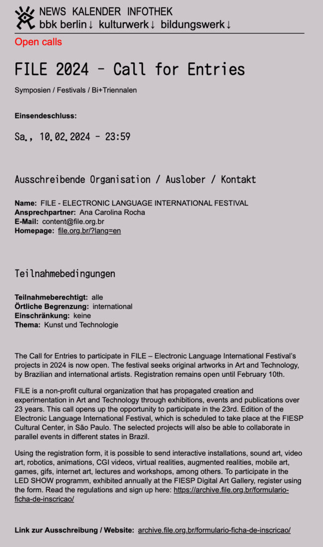 FILE 2024 – Inscrições Abertas – bbk berlin
