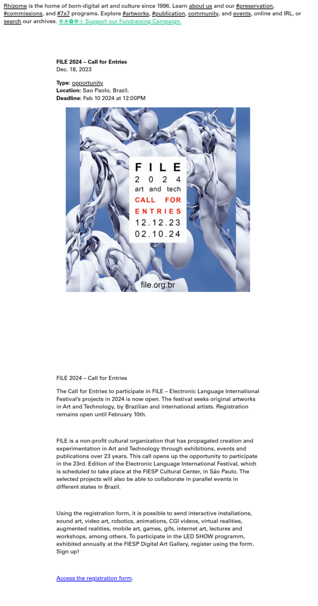 FILE 2024 – Inscrições Abertas – Rhizome