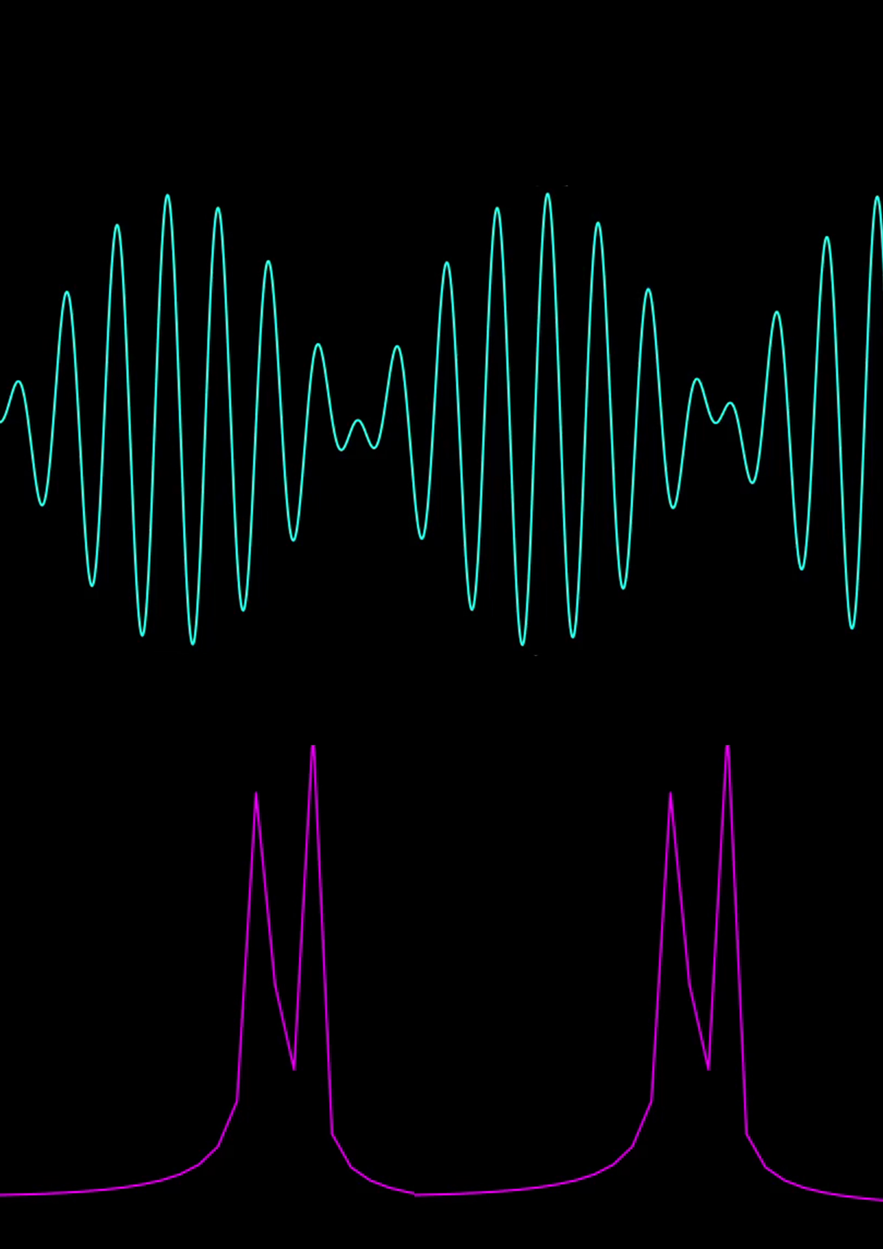As propriedades desse qubit são convertidas em um sinal de áudio por meio de um script Python, tornando-as audíveis e visíveis em uma onda sonora acompanhada de seu espectro.