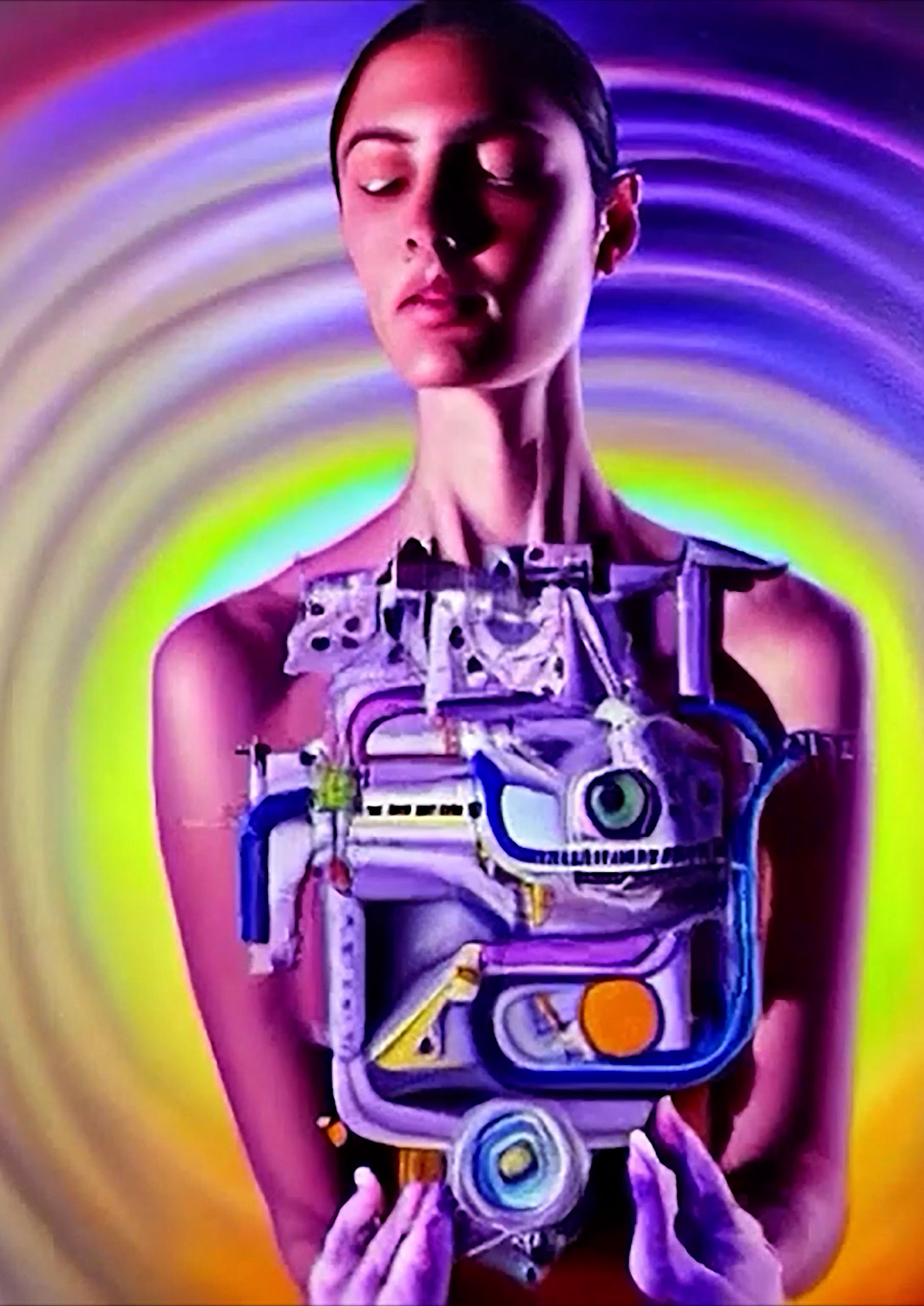 OVERCOME contém uma seleção de obras de IA entrelaçadas em uma história única. O elemento central é a fascinação, o conflito e a relação que os humanos têm com a tecnologia. Imagens e vozes foram criadas em um processo contínuo de experimentação usando uma combinação de modelos de aprendizado de máquina de texto para imagem, texto para texto e texto para voz, e posterior processamento digital.