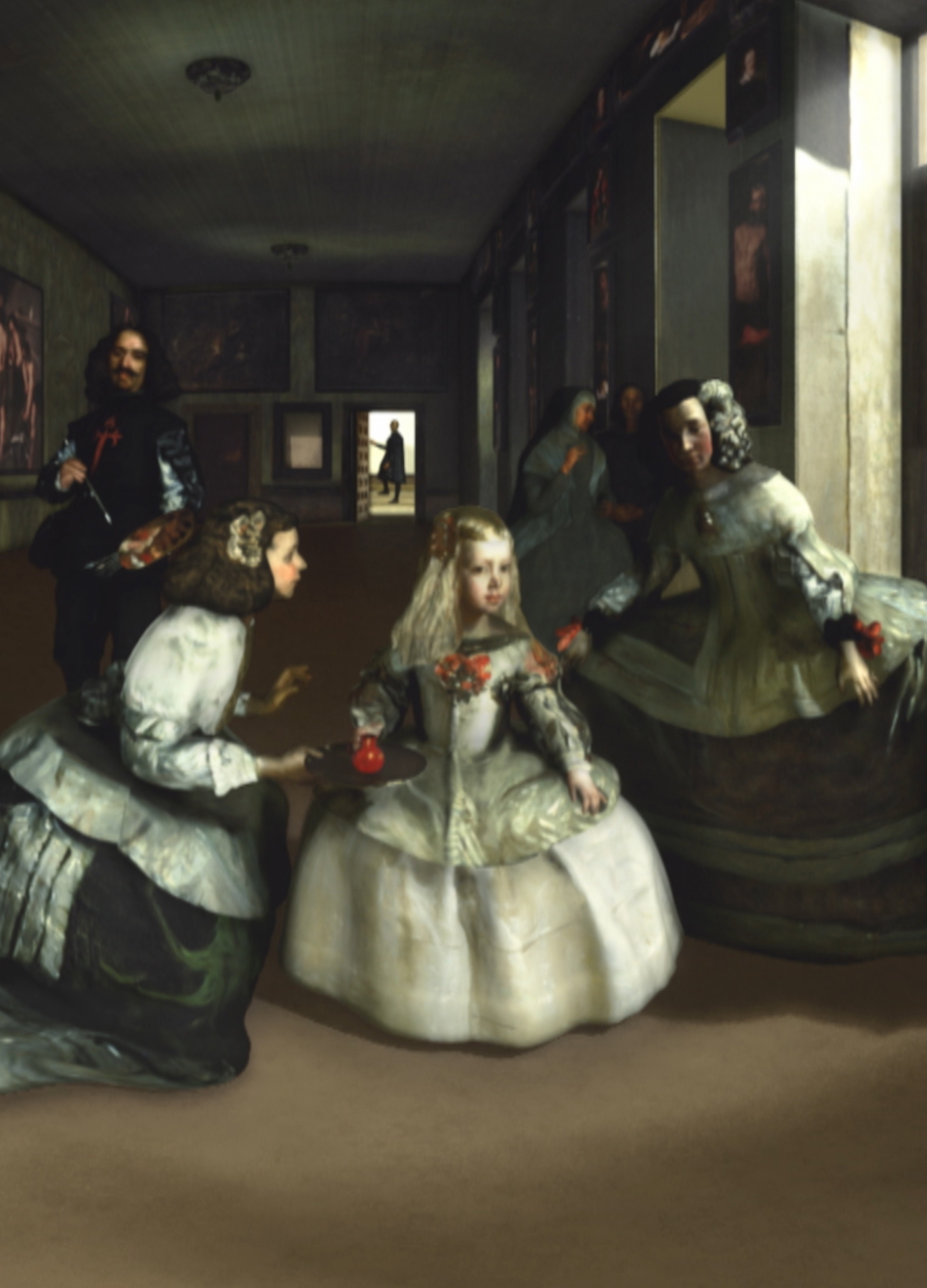 Diego Velázquez olhou para nós detrás do cavalete. Seu olhar nos convida. Passamos para o outro lado deste quadro arrebentando o coração do trabalho para submergir junto ao pintor na vertigem e nos ecos enigmáticos que ele não para de tocar. Entre ilusão e realidade, Velázquez apreende os sentidos e questiona incessantemente a razão.