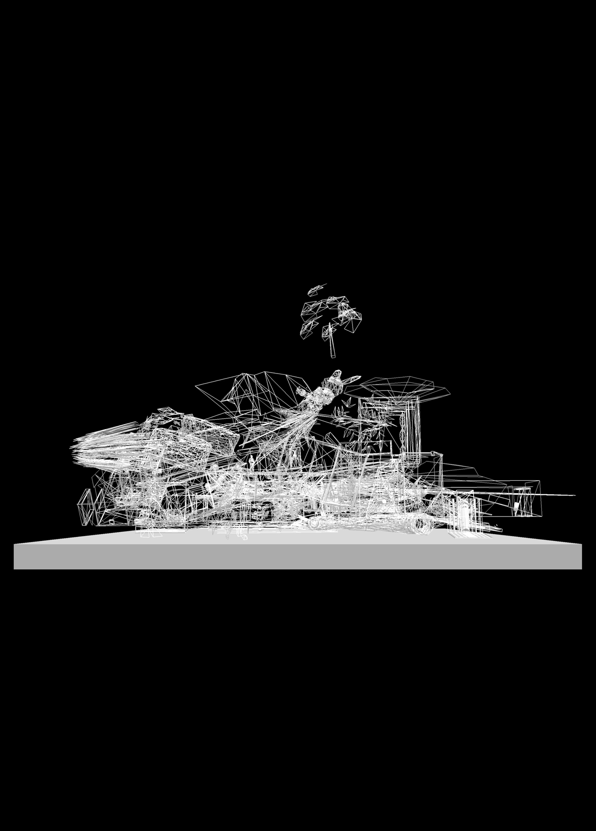 ‘How Much Memory is Needed’ retrata um mundo 3D qualquer, onde wireframes caem de um ‘céu’ neutro. Os modelos são retirados, em intervalos regulares, de um banco de armazenamento 3D do Google, de forma que as imagens vão se acumulando à medida em que o repositório é abastecido por seus autores. Estamos cada vez mais fascinados com a construção de mundos virtuais imersivos, e muitas vezes esquecemos que este, aparentemente efêmero, empreendimento tem necessidades físicas reais. Entramos em mundos virtuais através de dispositivos pequenos, fones de ouvido e computadores pessoais, mas a quantidade de espaço que é necessário para armazenar todos os dados utilizados na construção desses mundos tem um impacto físico real. ‘How Much Memory is Needed’ é inspirado no conto de Jorge Luís Borges, Sobre o Rigor na Ciência, que levanta a questão da utilidade de um mapa que, por ser tão preciso, acaba se tornando tão grande quanto o território que representa. Este projeto pretende criar uma conscientização física sobre a quantidade de dados que são carregados continuamente.
