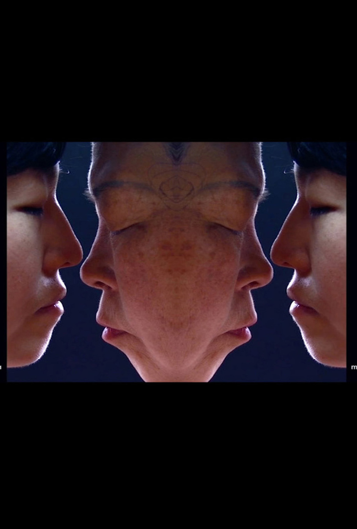 “Intimate Distance” é composta por dois vídeos capturando os membros da família da artista com os olhos fechados e na menor distância possível entre eles sem que se toquem. Usando um reflexo de espelho como estratégia visual, ela enfatiza as distâncias íntimas como espaços negativos e o poder da transformação.