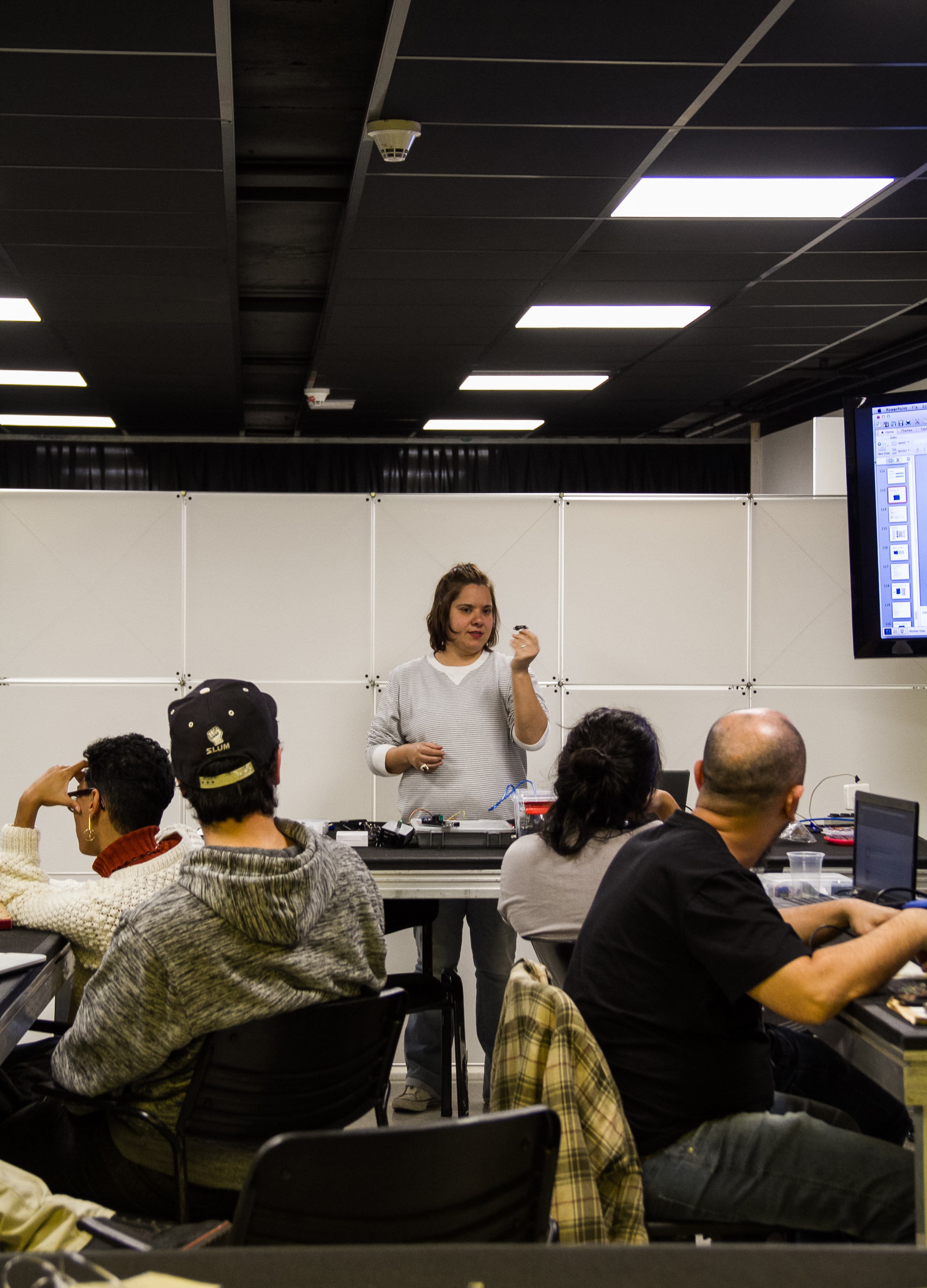de manipulação da imagem e do som. São apresentados os recursos da manipulação de imagem e som em tempo real, utilização de sensores, controladores, Arduíno etc.